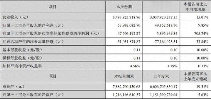 半年报显示,弘信电子上半年实现营业收入约34.94亿元,同比增长15.01%;归母净利润约为5399万元,同比增长9.85%。同时,扣非归母净利润约为4751万元,更是大涨705.74%!